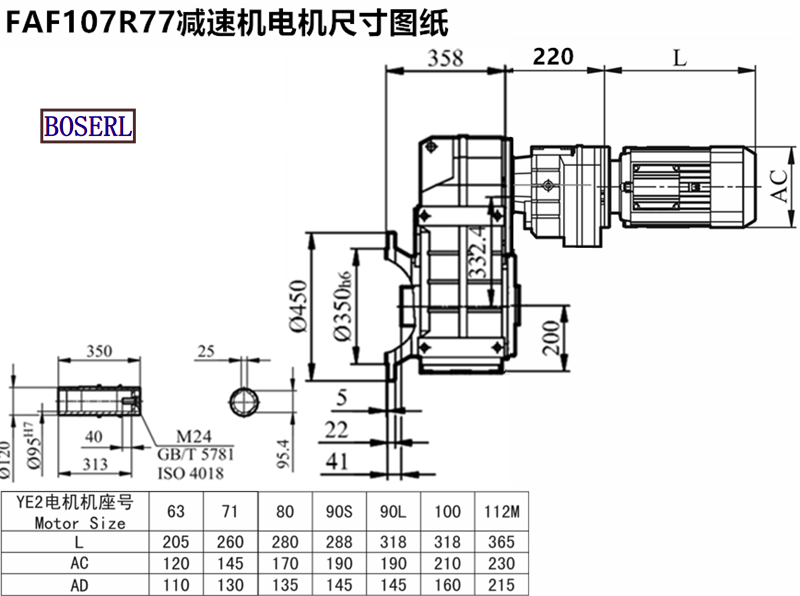 FAF107R77DT90S4減速機電動機安裝尺寸圖紙