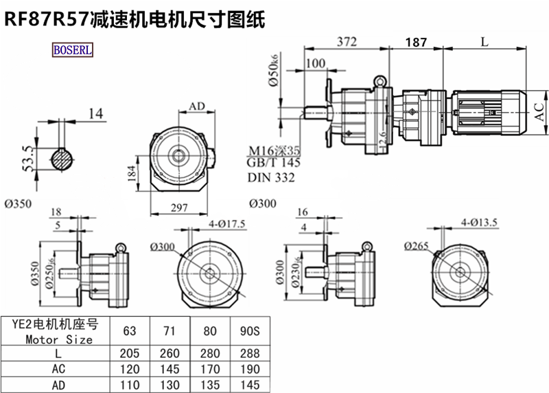 RF87R57DV90S4減速機電機安裝尺寸圖紙