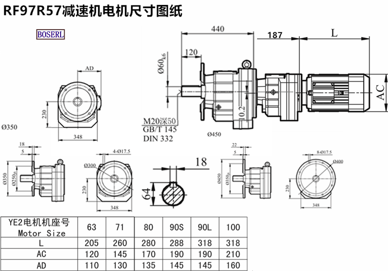 RF97R57DRN71M4減速機馬達安裝尺寸圖紙