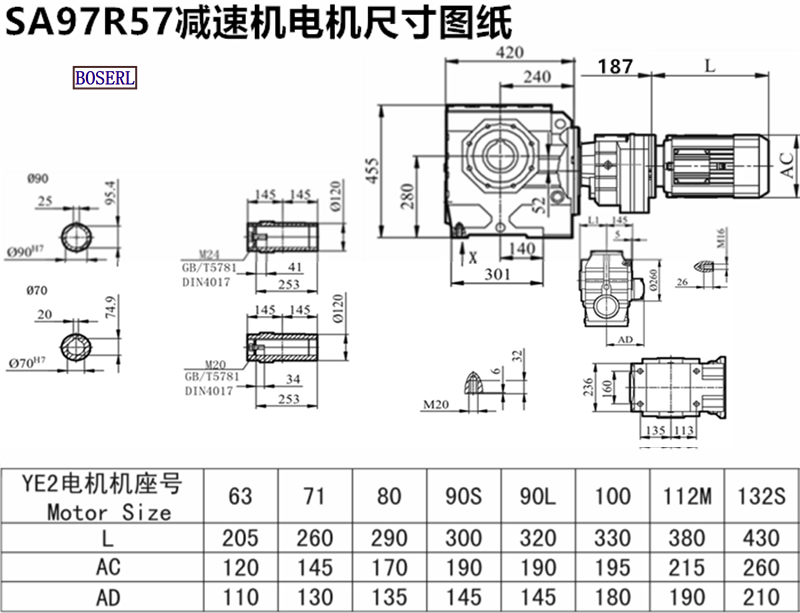 SA97R57DVE90M4電機減速器安裝尺寸圖紙