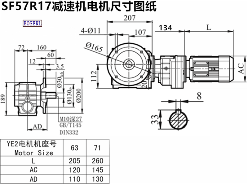 | SF57R17DR63L4 | 229 | 0.18KW | 5.80r/min | 193N.m | 24kg | 7830N | 1.55 |